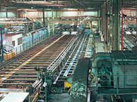 這個(gè)工序是通過(guò)控制室的計(jì)算機(jī)操控的。鋁合金型材經(jīng)過(guò)脫脂、蝕刻、電解著色、涂飾的過(guò)程,被自動(dòng)搬運(yùn)到液槽中。最后是烤漆和干燥的過(guò)程。