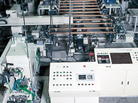 這個(gè)工序是通過(guò)控制室的計(jì)算機(jī)操控的。鋁合金型材經(jīng)過(guò)脫脂、蝕刻、電解著色、涂飾的過(guò)程,被自動(dòng)搬運(yùn)到液槽中。最后是烤漆和干燥的過(guò)程。